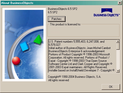The BusinessObjects 6.5.2 about