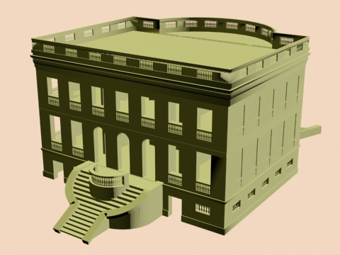 De 1786 à 1789; le banquier Samuel Pexotto fait construire sur le domaine d'Arlac (33) le château Peychotte, aussi appelé "Maison carrée d'Arlac" du fait de sa volumétrie. L'édifice, attribué à l'architecte Alexis Roche, élève de Victor Louis est alors conçu dans le goût néo-classique. Cette construction se caractérise par son colossal portique en hémicycle (façade sud) que l'on ne retrouve qu'au Château de Rastignac en Dordogne et à la Maison Blanche, à Washington ! Il a servi de référence à plusieurs architectes de la même époque dans le Bordelais. Après la mort de Peychotte, ruiné par la révolution, le château passe aux familles Guitraques puis Gandales en 1962. Classé monument historique en 1983, il a été racheté en 1990 par la ville de Mérignac qui a entrepris sa réabilitation. Ce modèle 3D réalisée à partir de plans et de photos prises sur place comporte plus de 110 000 faces et 140 objets.